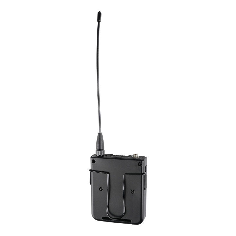 Головной микрофон телесного цвета оснащен ветрозащитой и кабелем с коннектором mini-jack TS, который подключается к поясному передатчику. Корпус обоих передатчиков выполнен из прочного пластика, а над кнопкой включения имеется небольшой дисплей, на котором отображается рабочая частота, уровень заряда батареи, а также качество передачи радиосигнала. Работают передатчики в диапазоне частот 600-638 МГц. Приемник, выполненный также из прочного пластика, оснащен кнопкой включения, регулятором уровня сигнала на каждом канале, двумя регуляторами для настройки, а также двумя небольшими дисплеями, на которых отображается вся необходимая информация. На задней панели предусмотрено 2 балансных выхода с разъемом XLR, выход Mix Out с разъемом jack TS 1/4", разъемы для антенн и разъем для блока питания.