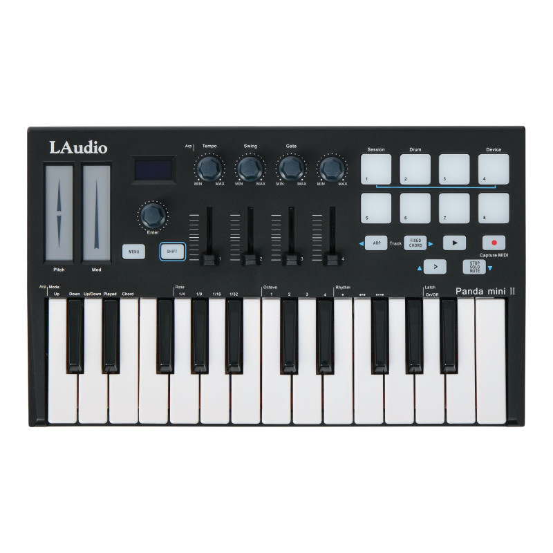 - 25 мини-клавиш, чувствительных к скорости нажатия, с 3 кривыми скорости и одной постоянной скоростью.