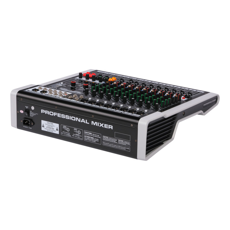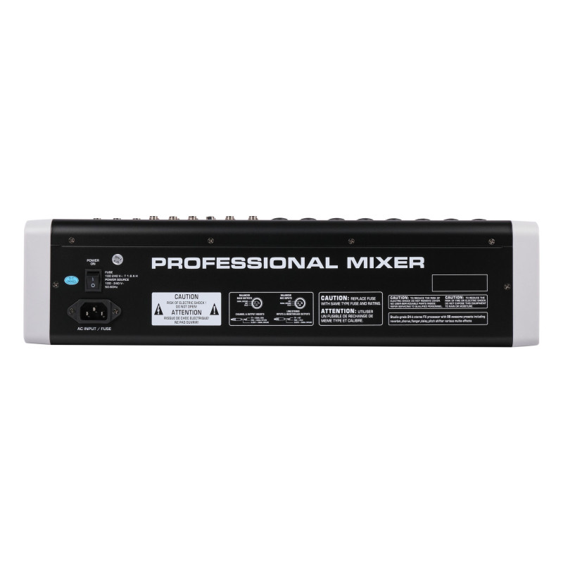 - Профессиональный микшер среднего размера с ультра-малошумящим дискретным микрофонным предусилителем и фантомным питанием 48 В.
