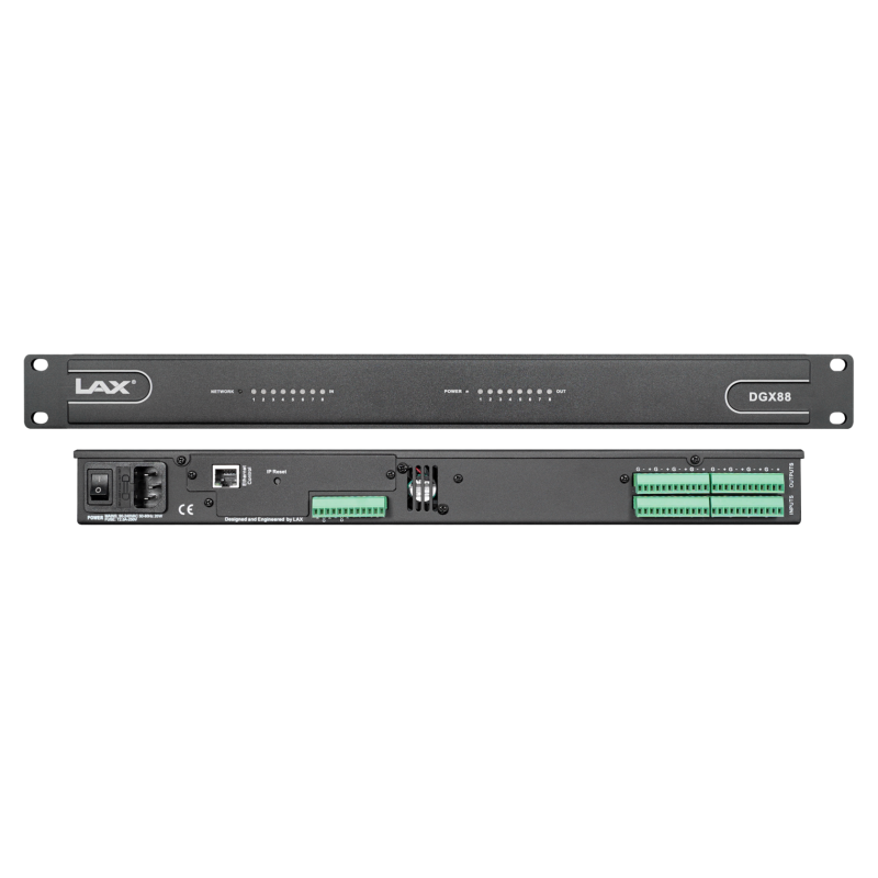 Есть возможность установки опциональной карты DGX DANTE card,что позволяет дополнить возможности матричного процессора серии DGX Dante 16-канальным сетевым аудиовходом/аудиовыходом.
