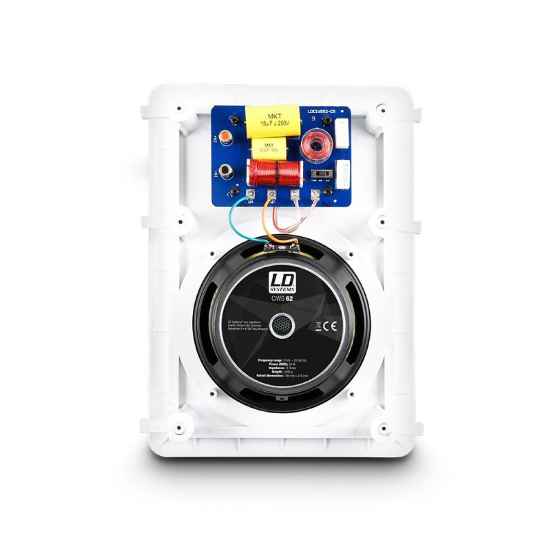 Система оснащена низкочастотным 6,5-дюймовым и высокочастотным 1,42-дюймовым излучателями с частотным диапазоном до 20 кГц, чувствительностью - 88 дБ при 1 Вт/1 м, а продолжительной мощностью – 60 Вт. CIWS 62 имеет безопасную систему крепления для легкой и быстрой сборки. Встраиваемая акустическая система предназначена для широкого спектра применения в системах фонового звука в отелях, ресторанах, барах, салонах, торговых центрах, учебных и конференц-залах.