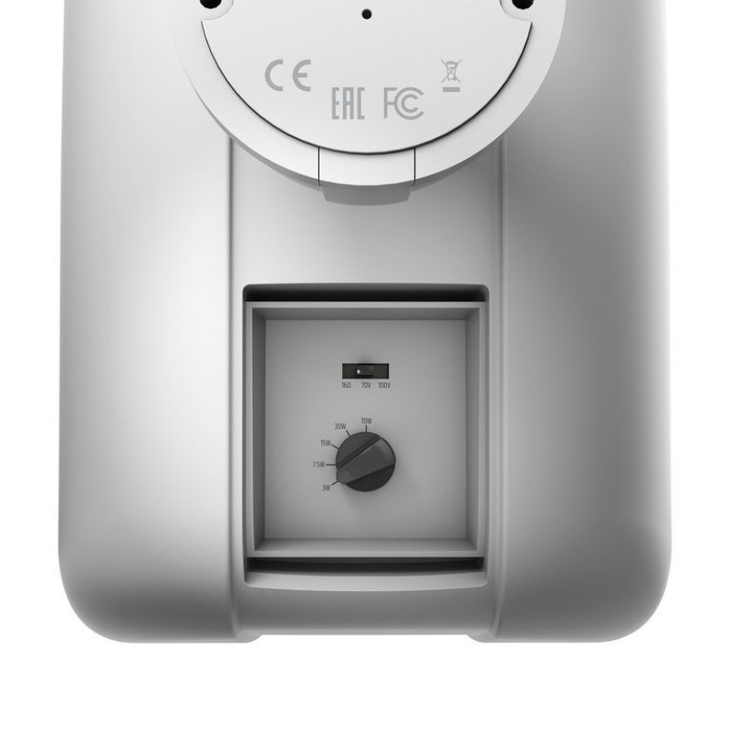 - Доступен в двух вариантах подключения: с низким импедансом (8 Ом) и в версии с трансформатором 70/100 В с несколькими ответвлениями питания, и может работать при низком импедансе (16 Ом).