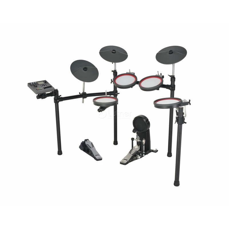 Пэды барабанов 10" с сетчатым покрытием Superlink, эксклюзивный патент. Настоящее ощущение барабана, совершенный опыт, защита от помех. Без потерь звука, без задержек, износостойкие и прочные. Пэды тарелок 12" из экологичного силикагеля, нетоксичного и кислотостойкого материала. Легко чистятся, не деформируются и не теряют цвет. Пэд бас-барабана с сетчатым покрытием, педаль из алюминиевого сплава с коррекцией положения колотушки.