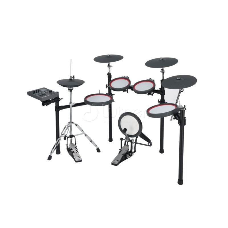 - Пэд бас-барабана с сетчатым покрытием, педаль из алюминиевого сплава с коррекцией положения колотушки.