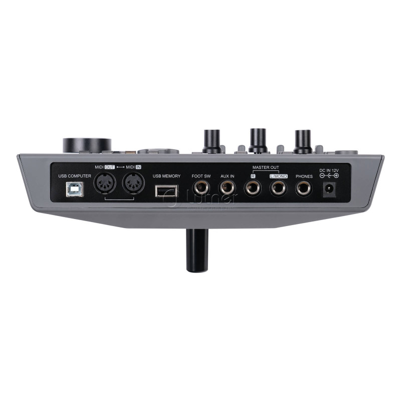 - Разъемы USB MEMORY (USB Type A), USB MIDI (USB Type B), PHONE (6.35mm), L/MONO (6.35mm), R (6.35mm), AUX (3.5mm), MIDI IN (6core DIN), MIDI OUT (6core DIN), TOM4 (6.35mm), CRASH2 (6.35mm), Data In (DB25)