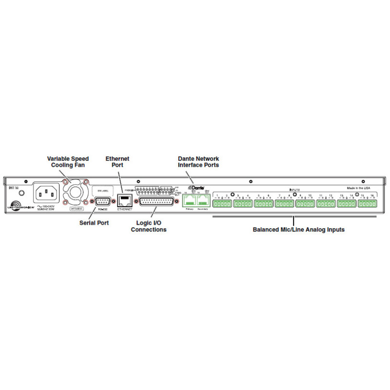 LECTROSONICS DNT16i цифровой интерфейс Dante. 16 аналоговых входов. 1U