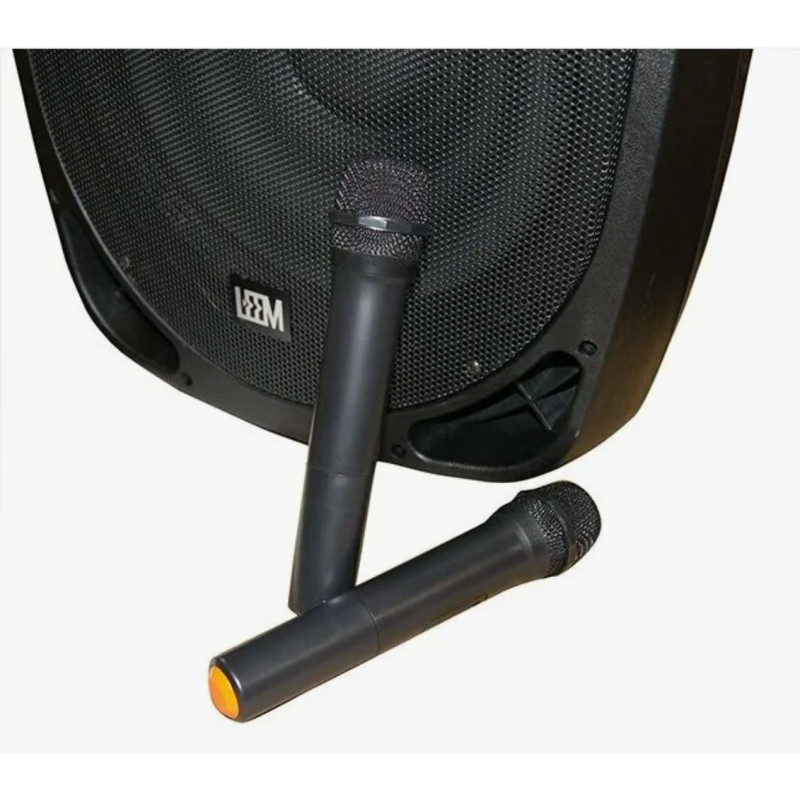 - Модель:Портативная активная АС с аккумулятором и с двумя беспроводными микрофонами, 120 Вт., 15"