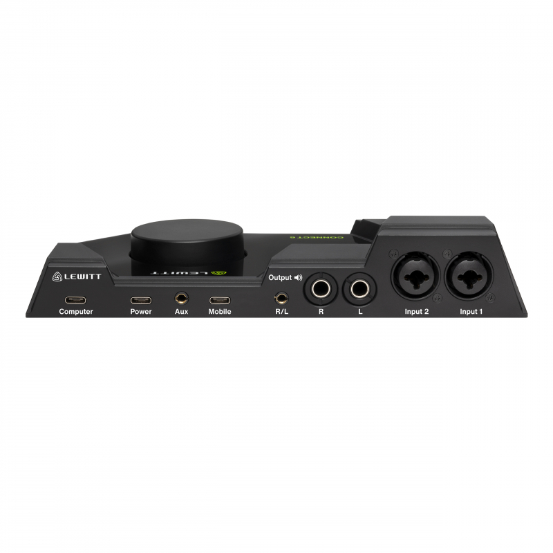 Lewitt CONNECT 6 предлагает широкие возможности цифрового и аналогового подключения. Аудиоинтерфейс работает с компьютерами на операционных системах Windows и macOS, а также со смартфонами или планшетами на Android и iOS. Устройство прошло сертификацию Apple MFI и имеет полную поддержку iPhone/iPad. Lewitt CONNECT 6 оснащен двумя микрофонными входами комбинированного типа 2 x XLR / 1/4" Jack TRS, которые расположены на задней части корпуса. Они оснащены предусилителями студийного уровня с коэффициентом усиления 72 дБ, чего хватит для работы с требовательными к предусилению микрофонами. Также эти входы можно использовать для подключения линейного сигнала с внешних синтезаторов или гитар. Для подключения активных мониторов на аудиокарте присутствуют два балансных выхода 1/4" Jack TRS, а также линейный стереовыход 1/8" Jack TRS, который можно использовать для подключения портативной акустики. Для подключения компьютера имеется отдельный порт USB-С, а для подключения смартфонов и планшетов далее расположен другой порт USB-C. Для подключения дополнительного питания имеется еще одни разъем USB-C. С помощью дополнительного AUX-входа 1/8" Jack TRS к аудиоинтерфейсу можно подключить внешние плееры. Для подключения наушников доступны выходы 1/8" Jack TRS и 1/4" Jack TRS, расположенные на передней части корпуса.
