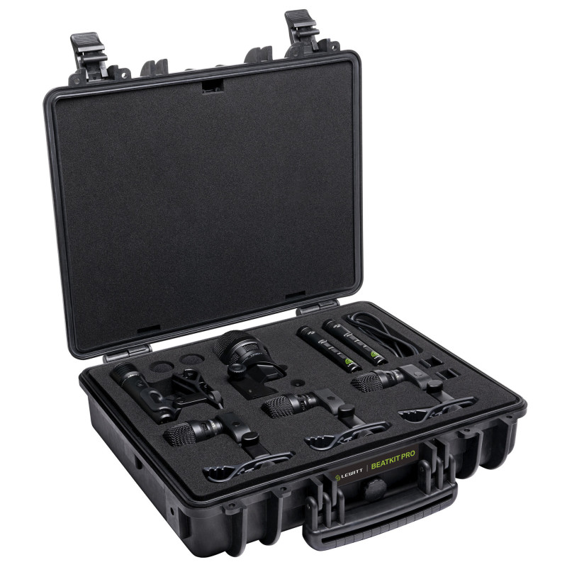 Lewitt BEATKIT PRO – это премиальный комплект, который включает в себя 7 микрофонов и набор аксессуаров к ним – всё, что может потребоваться для подзвучки профессиональной ударной установки в студии и на сцене.