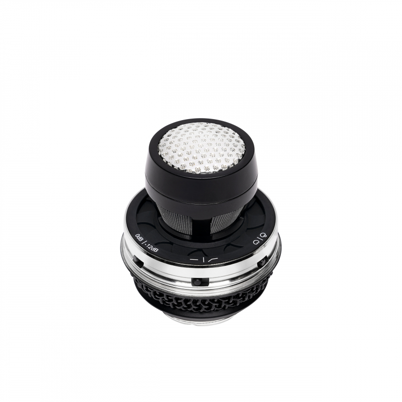 Ручной микрофон премиум-класса обеспечивает высококачественное звучание. Отсоединяемый конденсаторный капсюль способен передавать звучание каждой детали голоса, как и студийный микрофон, что повышает качество выступления на сцене. Капсюль диаметром 1 дюйм устойчив к обратной связи, благодаря 90-процентному подавлению звуков с тыла. Под защитной решеткой микрофона расположены переключатели типов направленности - кардиоидный и суперкардиоидный. Решетка имеет два защитных слоя, встроенный поп-фильтр, защищает капсюль от влаги и ударов, устраняет шум ветра на открытом воздухе. Далее имеется переключатель фильтра низких частот на 120 Гц, позволяющий уменьшить излишний низкочастотный гул. Благодаря наличию аттенюатора можно работать с более громкими источниками звука, доступно переключение на -12 дБ и 0 дБ.