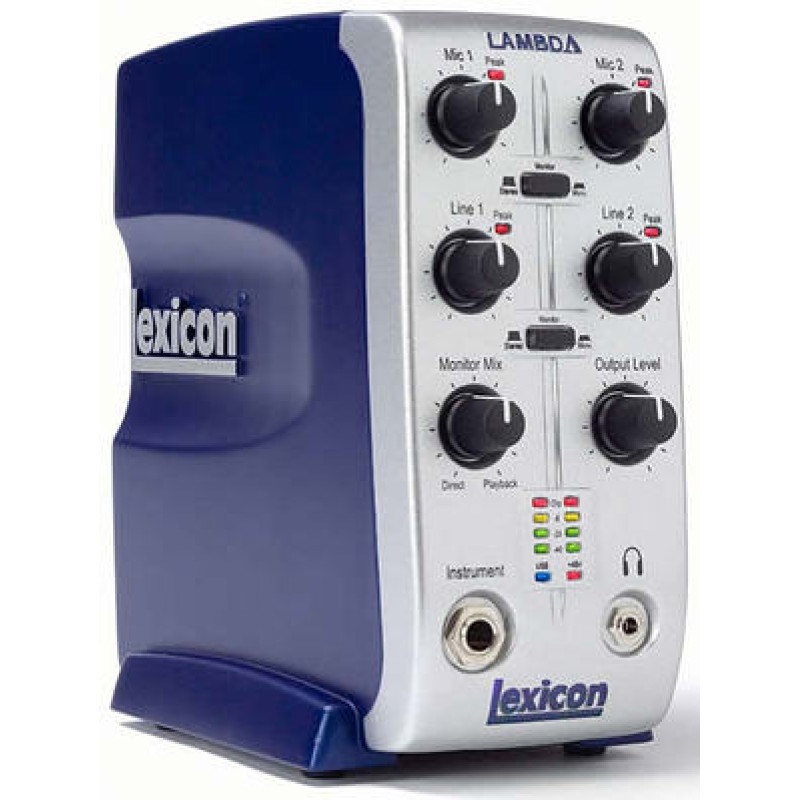 Новая студия Lexicon Lambda продолжает традиции непревзойденного качества, начатой ее популярной предшественницей Omega Studio, наследуя такие ее преимущества, как высокое качество оцифровки и предусилителей, бесплатное ПО Cubase LE и плагин реверберации Lexicon Pantheon™ VST™. Отличается Lexicon Lambda более компактным и доступным исполнением, а также удобным и простым в использовании питанием по USB. Так же как и Omega, Lambda - это полноценная студия звукозаписи, предоставляющая возможность аппаратного микширования с помощью USB-микшера (4 входа x 2 шины x 2 выхода).