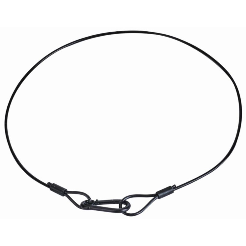 Высококачественный страховочный стальной трос с оболочкой из ПВХ. Даная модель имеет неразборные петли и оснащена одним карабином без фиксации.