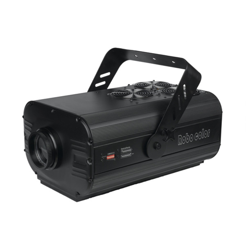 Колорченджер, линза РС, 2 диска, 20 цветов, стробоскоп, эффект радуги, электронный диммер, шаттер. 3 канала DMX512, лампа CP93 240V-1200W, цоколь G22 в комплекте. Вес 16кг.