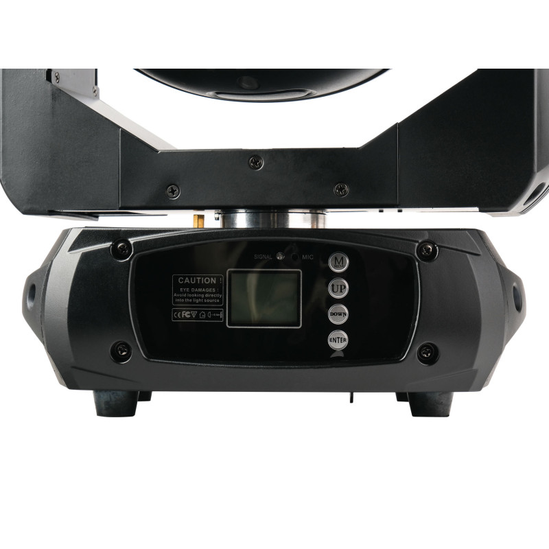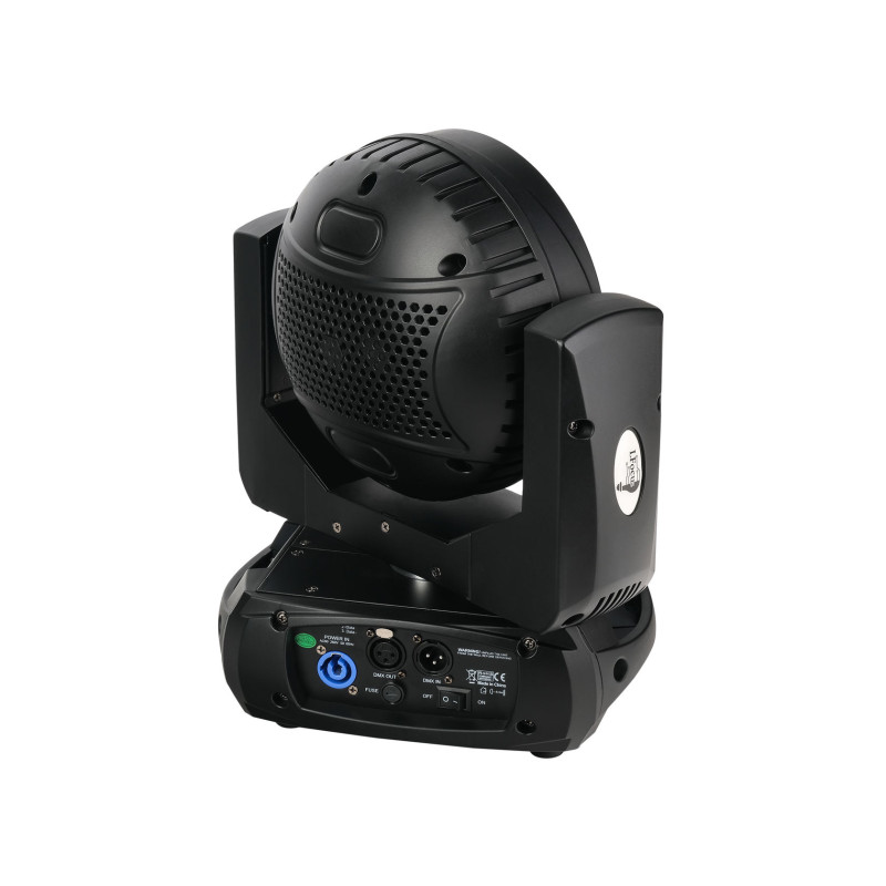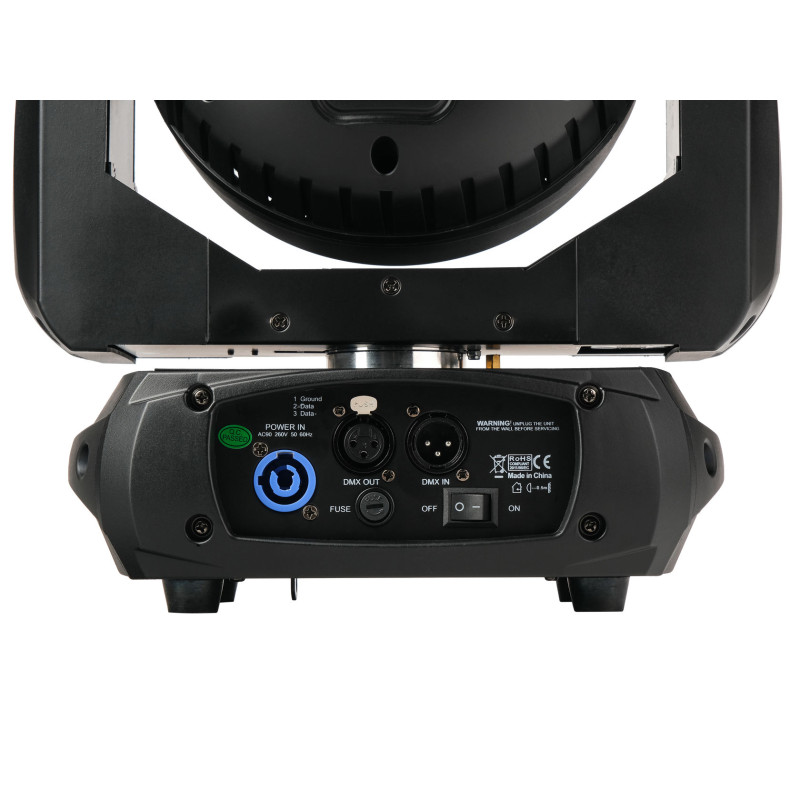 В передней, центральной части прожектора установлена система из 9 колец с белым SMD светодиодами. Каждое кольцо светодиодов можно настраивать независимо от других, что позволяет создать впечатление движения и интересных световых эффектов. В задней части корпуса расположены разъемы powercon IN/OUT, 3-контактный XLR вход и выход для отправки сигналов управления DMX, а также панель управления в виде ЖК-дисплея и четырех кнопок (Меню, Вверх, Вниз, Ввод). Они позволяют вручную настроить статическое освещение или выбрать один из нескольких режимов работы.