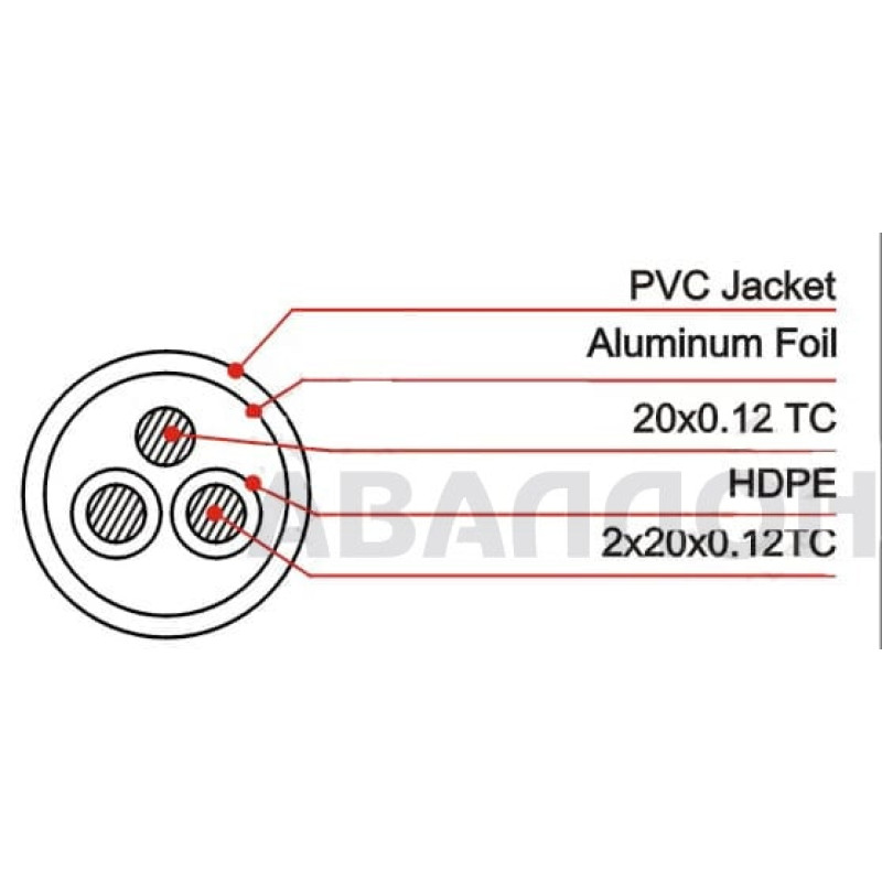 | Экранирование | Проводник из витой бескислородной меди, 20 жил по 0,12 мм + алюминиевая фольга 100% |