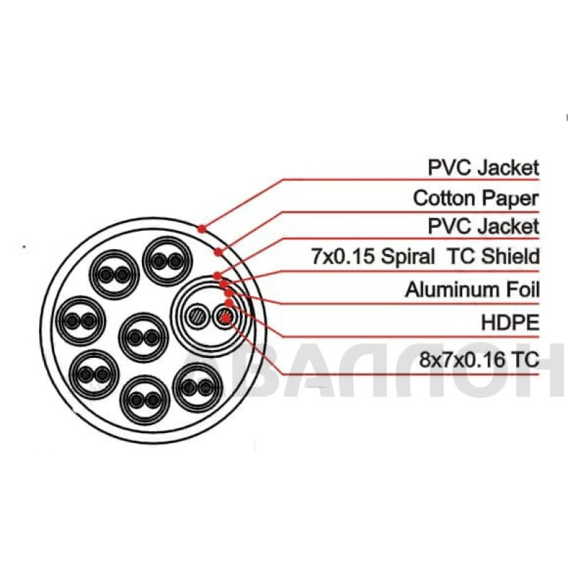 - Модель:Цифровой аудио кабель DMX (AES-EBU), 7х0,16 мм2