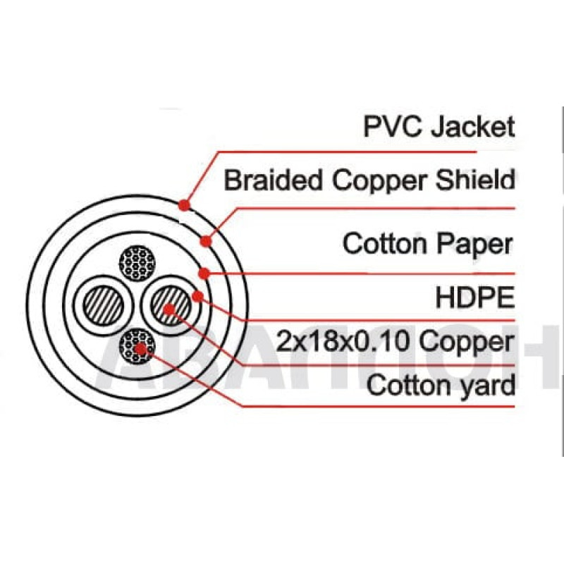 | Экранирование | витая бескислородная медь, 64 жилы по 0,12 мм (обмотка косичками) |