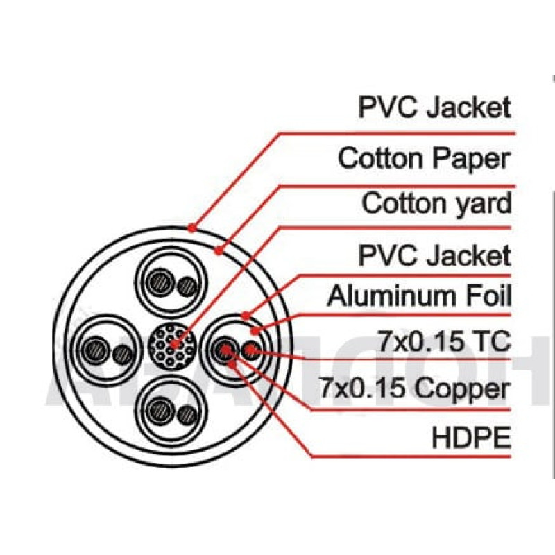 | Экранирование | витая бескислородная медь, 7 жил по 0,15 мм, с дополнительной экранировкой алюминиевой фольгой 100% |