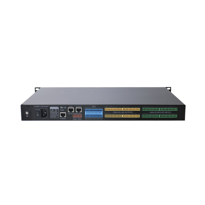 В DSP-1616ND+ используется ведущая в отрасли микросхема ADI DSP SHARC 21489, а самая высокая рабочая частота может достигать 450 МГц. Входные и выходные модули DSP могут быть настроены в соответствии с условиями объекта. В то же время, он имеет независимые AFC/ AEC/ ANS/ AGC/ усиление совместного автоматического смешивания, пороговое автоматическое смешивание и другие модули обработки.