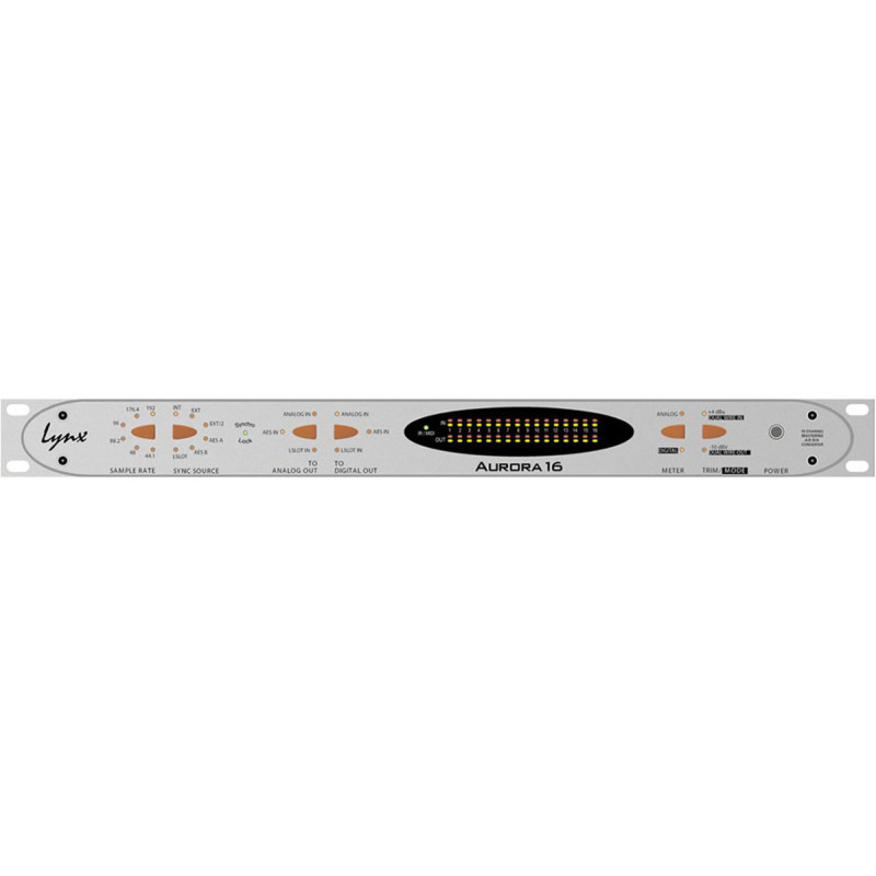 16-ти канальный АЦП/ЦАП конвертер, использующий технологию Lynx Studio Technology, которая отлично себя зарекомендовала. Устройство отличается простотой подключения и установкой для живых выступлений и студий звукозаписи, обеспечивает профессиональное качество и имеет хорошо сбалансированную аналоговую часть. Фронтальная панель девайса отличается прекрасной информативностью и хорошей интуитивностью управления. На задней панели размещены симметричные линейные аналоговые выходы и входы типа D-Sub, электрические цифровые выходы и входы формата EBU/AES, вход и выход MIDI, слот для плат расширения.