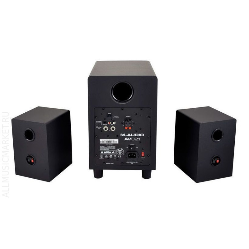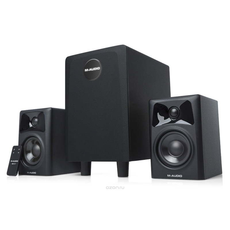 M-Audio AV32.1 Активный студийный монитор. В набор AV32.1 от M-Audio входят два компактных монитора на две полосы и сабвуфер, оснащенный трехканальным усилителем. Система отличается полнодиапазонным, живым и глубоким звучанием. Оборудование предназначено для небольших студий и подойдет под сведение и мониторинг. Помимо этого, AV32.1 можно применять как мультимедийную акустику.