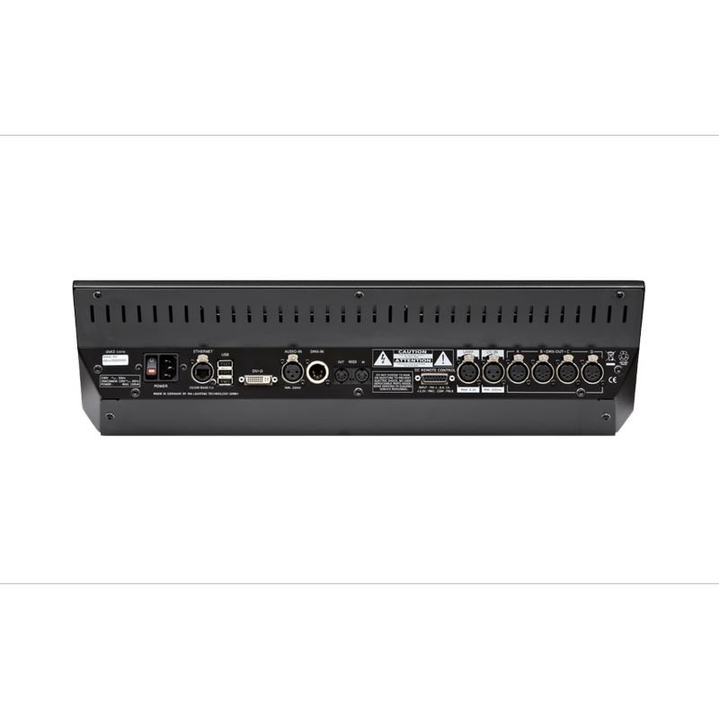 - Выходные разъемы: 4 XLR 5pin, 3 х USB, 1х DVI-D и 1 х DIN, 1 х XLR 4pin (лампа)