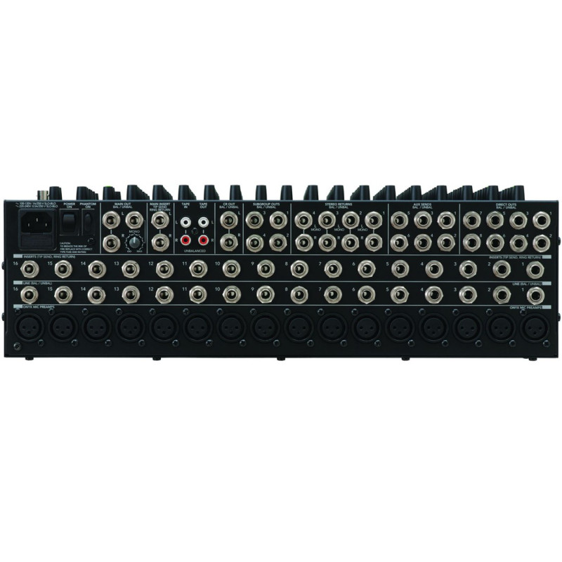 | Входы | 16 x XLR, 16 x 1/4" TRS Jack line in, 16 x 1/4" TRS Jack insert, 8 x 1/4" TRS Jack stereo returns, 2 x RCA tape in, 2 x 1/4" TRS Jack main insert |