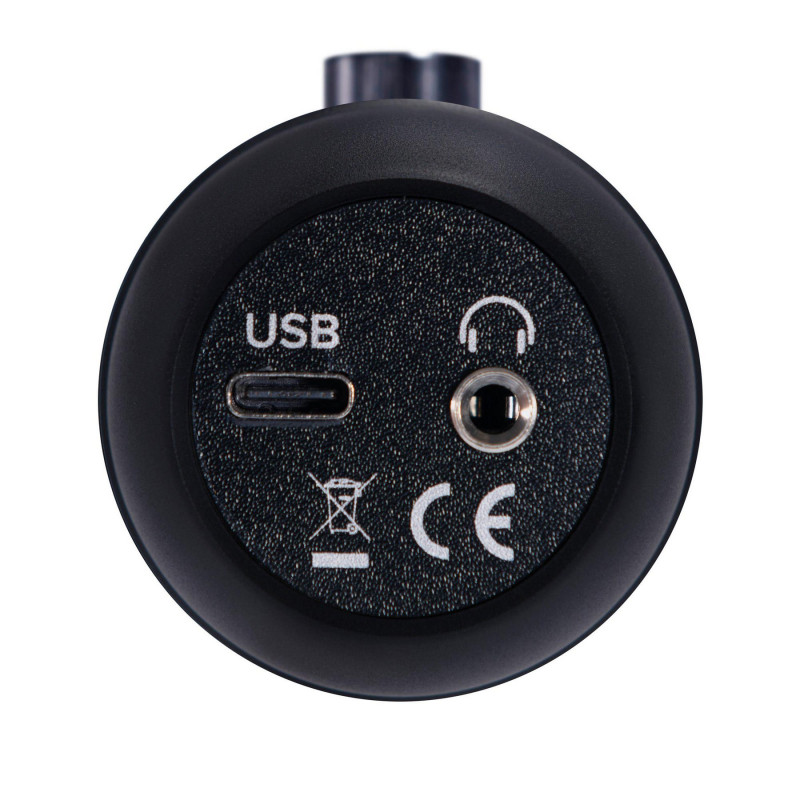 Микрофон оборудован выходом для наушников на разъеме 1/8” Jack TRS, который позволяет прослушивать аудио с компьютера. На корпусе имеются ручки для регулировки громкости наушников и уровня усиления сигнала с микрофона. Помимо этого, есть кнопка Mute, останавливающая передачу воспринимаемого устройством звука, и LED-индикатор, который сигнализирует о наличии питания и активации режима Mute. Обмен данными и питание осуществляется посредством порта USB-C. Устройство работает с компьютерами на платформах Windows и MacOS, не требуя для этого установки драйверов.