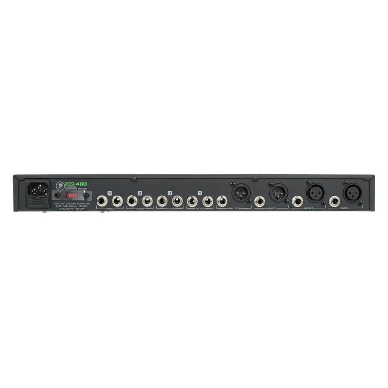 Средняя модель из серии усилителей Mackie HM, которая впервые была представлена на выставке NAMN 2018. Данное устройство выполнено в металлическом рэковом корпусе 1U. В отличие от младшей модели HM-4, данный прибор имеет в три раза больше выходов для наушников, расширенные возможности подключения усилителя к другим устройствам, тем самым Mackie HM-400 является более подходящим для профессиональных студий прибором.