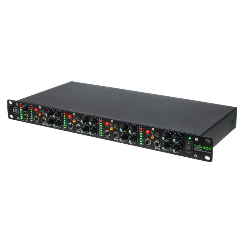 Mackie HM-400 является усилителем для наушников, подходящим для использования в профессиональных студиях. Модель имеет множество коммутационных возможностей, отдельную секцию управления для каждого из каналов, а также цельнометаллический рэковый корпус стандарта 1U, который легко можно монтировать в рэковый модуль.