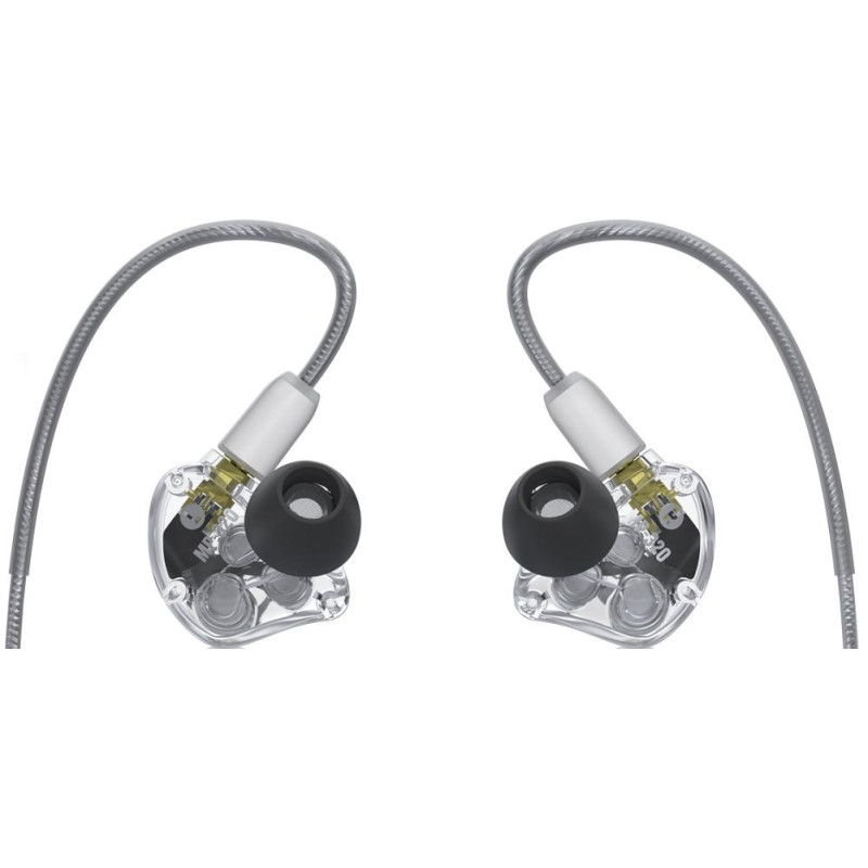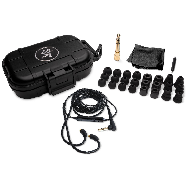 MP-320 - младшая модель линейки наушников Mackie MP для профессионального использования. Устройство оснащено тремя динамическими драйверами с кроссовером на одно ухо, облаченными в эргономичный прозрачный корпус с разъемом MMCX c возможностью проворачивания, что должно увеличить долговечность конструкции. Также MP-320 оснащены плетеным кабелем c трехкнопочным пультом, набором из насадок разных форм и размеров из пены и силикона. В комплект к устройству идут жесткий кейс для хранения, переходник на 1/4 и чистящая ткань.