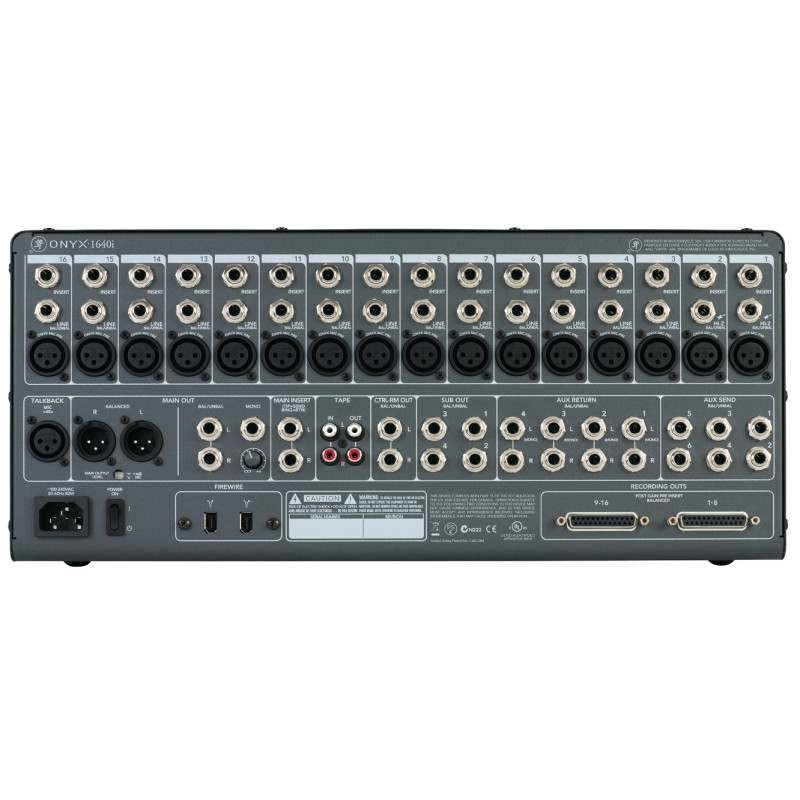 Onyx-i - обладает 16 микрофонными/линейными каналами, каждый из которых оснащен 4-полосным эквалайзером Perkins EQ с возможностью выбора эегулируемой частоты, б шинами AUX посыла до и после обработки, возможностью назначения 4 подгрупп и мощной полнофункциональной секцией мастеринга.Несмотря на внушительное количество каналов, Onyx 1640i остался достаточно компактным микшером с возможностью монтажа в рэковую стойку, что позволяет его использовать как в студии (например врезав в гудийный стол), так и на концерте или другом мероприятии в составе рэкового оборудования.Интегрированный 16x16 интерфейс FireWire позволяет одновременно доставлять все 16 каналов, сигналы с Aux- и Master L/R сигнал в Башу монтажную станцию с нулевыми задержками. Все микшеры серии Onyx-i плоностью поддерживают все основные цифровые рабочие станции, включая Pro rools© M-Poweredu 8, Logic®, Sonaru, Cubase©, Ableton© Live, Acid© Pro, Digital Performer© и многие другие.Благодаря FireWire, микрофонным предусилителями студийного качества и великолепным эквалайзерам эеволюционные микшеры Onyx-i способны осуществлять профессиональную запись и работу как с аналоговым,как и с цифровым аудио.