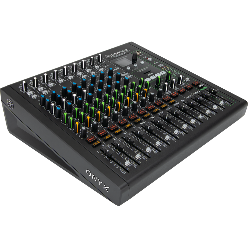 Одной из моделей линейки является 12-канальный Макки Onyx12, оснащенный 8 предусилителями, небольшим дисплеем, 13 фейдерами и набором управляющих кнопок / регуляторов. Новинка имеет 4 моно и 4 стерео канала, каждый из которых укомплектован эквалайзером, НЧ фильтром, регуляторами усиления / панорамы, кнопками EQ / Mute / Solo и регуляторами AUX Mon / Fx.
