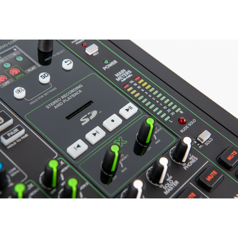 К другим особенностям Onyx12 относятся: набор цифровых эффектов, возможность сохранения пресетов, функции для работы с SD картами, прочный корпус (Built-Like-A-Tank), широкие коммутационные возможности. Новинка будет поставляться с программами Pro Tools First, Waveform и комплектами плагинов Mackie Musician, Daw Essentials.