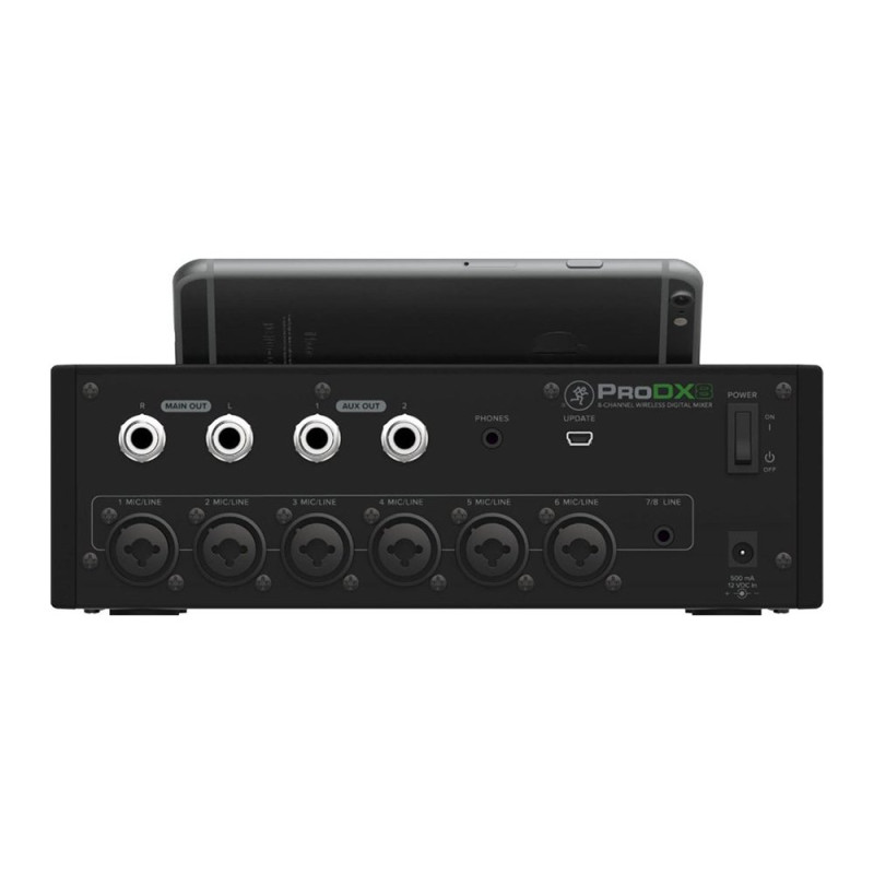 Mackie ProDX8 управляется преимущественно единственной многофункциональной ручкой, с которой вы имеете доступ к настройкам для любого подключения. Благодаря предусилителям Mackie Wide-Z, ассоциированным с шестью входами на комбинированных разъемах XLR/TRS, микшер не требует настройки входного гейна, упрощая подстройку в целом. Выходы выполнены на разъёмах 1/4" TS Jack (main и aux), плюс выход на наушники для бесшумного прослушивания. Два aux-посыла позволяют вам создавать множественные мониторные или просто разные миксы.