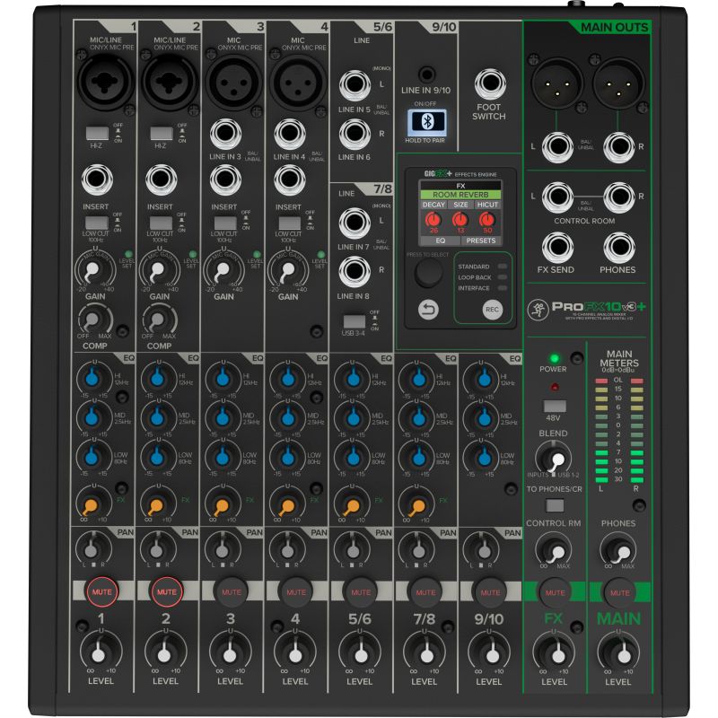Улучшите свой звук с помощью эффектов GigFX+ высокого разрешения с 12 пресетами, которые вы можете редактировать и сохранять на лету с помощью полноразмерного ЖК-экрана. ProFXxv3+, сочетающий в себе тепло аналоговой записывающей консоли с точными цифровыми эффектами, является идеальным микшером как для домашних студий, так и для живых выступлений.