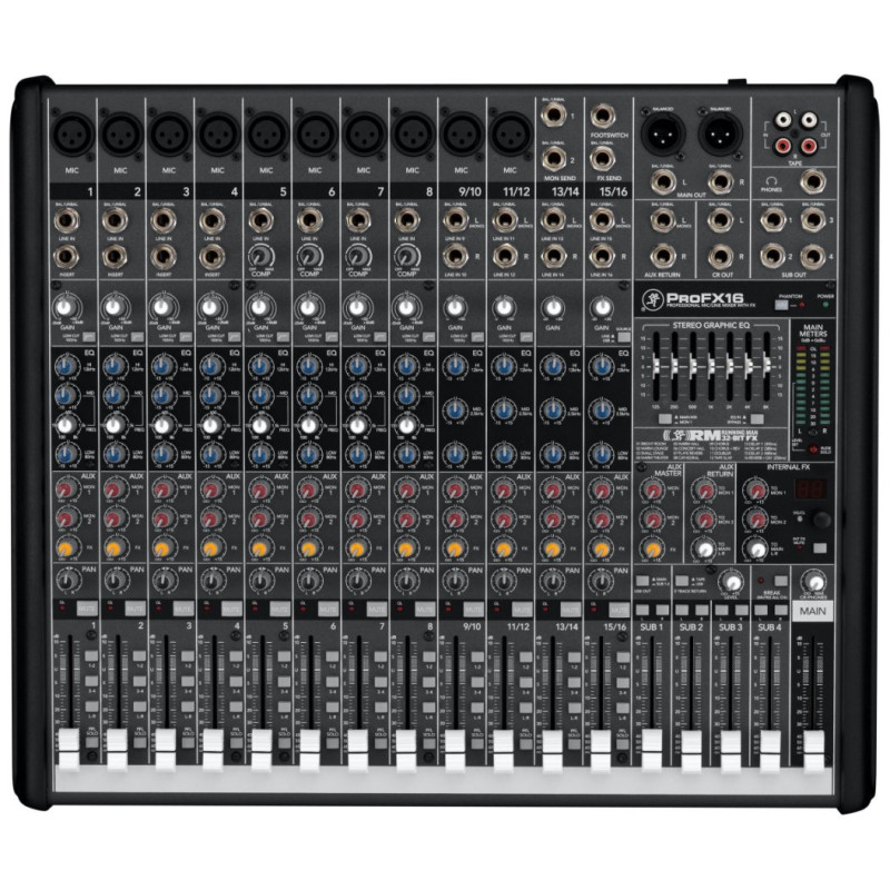 Mackie ProFX16 – это шестнадцатиканальный пульт для микширования во время работы вживую, идеально подходящий для площадок среднего размера или для гастролирующих групп, которым нужен хорошо звучащий, но портативный микшерский пульт.