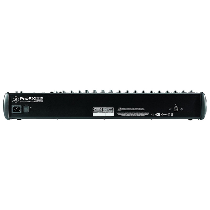 Mackie ProFX22v2 предлагает 6 XLR-разъемов для подключения микрофонов. Все 22 канала располагают разъемами 1/4" Jack TRS, которые можно использовать для балансного и небалансного подключения. Есть вход и выход TAPE на стереоразъемах RCA с выделенной ручкой регулировки. Мастер-выходы выполнены на XLR и продублированы на разъемах 1/4" Jack TRS. Два выхода AUX предназначены для мониторинга сигнала с ручками регулировки на каждом канале. На 10 моноканалах есть инсерт-разъемы для подключения внешних устройств обработки. Используются фейдеры 60 мм для входных каналов, возвратов и для мастер-каналов. Есть и выход на наушники с отдельным регулятором уровня. Наконец, присутствует функция глушения каждого канала, а также функция глушения процессора эффектов с помощью футсвитча.