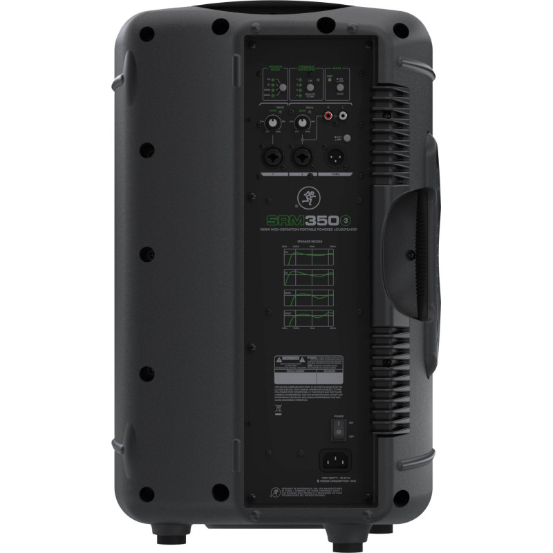 Mackie SRM350v3 – активный двухполосный портативный концертный громкоговоритель высокой мощности серии SRM производителя Mackie, содержащий в себе встроенный процессор DSP, усилители мощности классов D и A/B, а также малошумные комбинированные входы XLR/TRS с контролем гейна и сквозной выход XLR.