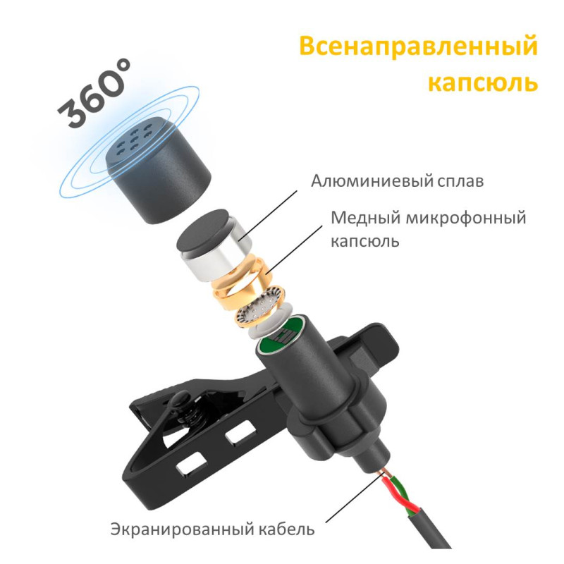- Модель:петличный микрофон для интервью, конденсаторный всенаправленный