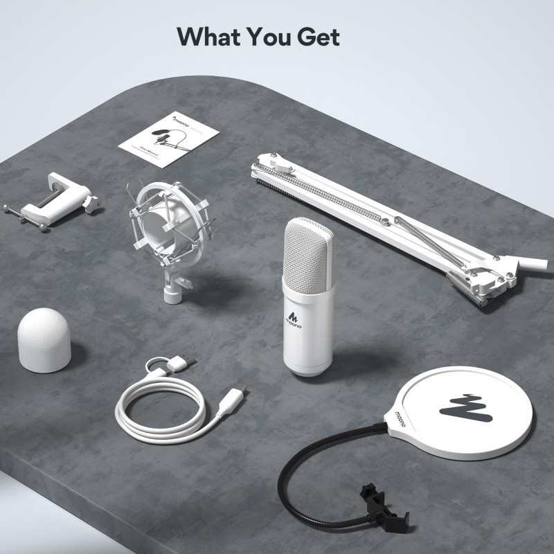 Maono AU-A04E – это простой и доступный USB-микрофон, отлично подходящий для работы в домашних условиях для записи музыкальных инструментов, вокала и речи.