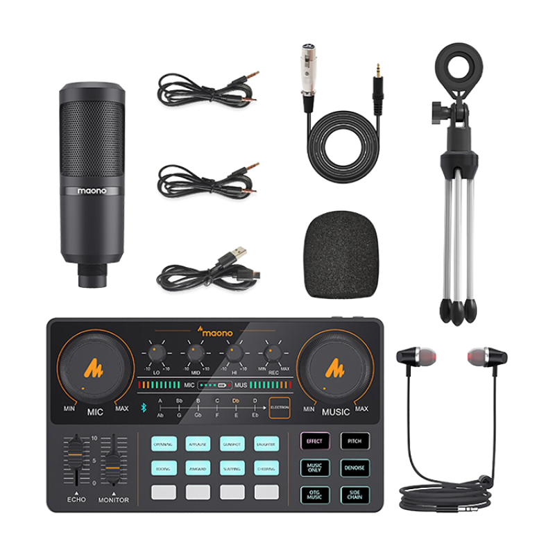 Maono AU-AM200 S1 - комплект, состоящий из настольного аудиоинтерфейса и конденсаторного кардиоидного микрофона.