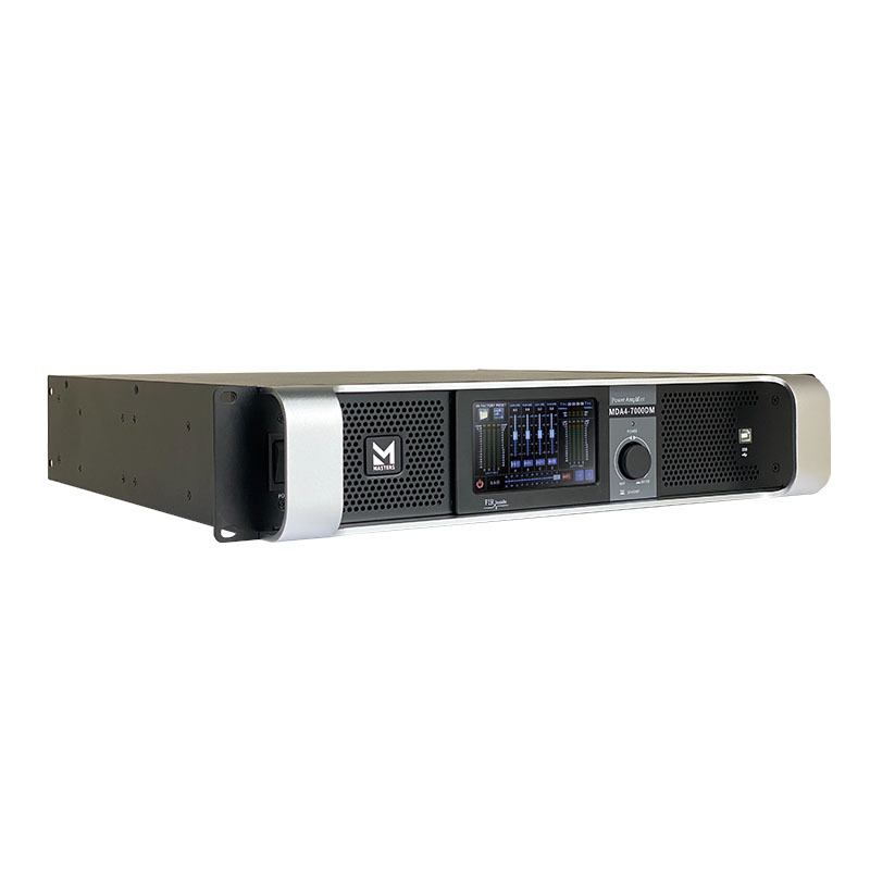 MDA 4-7000DM — это высокопроизводительный и высокомощный цифровой усилитель мощности для турового применения. Он имеет общую выходную мощность 4x1300 Вт и 4 канала с импедансом 8 Ом. Устройство обладает встроенным мощным цифровым процессором с 4 входами и 4 выходами. Сенсорный дисплей 4,3" высокой чёткости отображает состояние системы, а достаточная мощность обеспечивается мощным встроенным процессором DSP, что позволяет этому усилителю мощности работать как в составе стационарных систем, так и мобильных звуковых комплексов.
