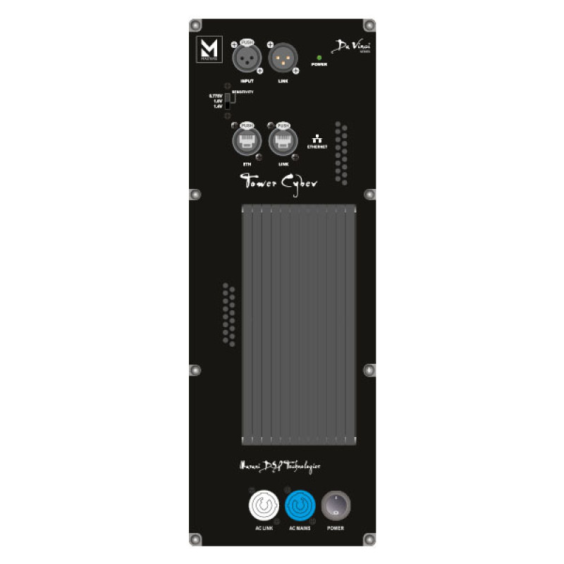 TOWER CYBER оснащается одним мощнейшим 18-дюймовым динамиком и усилительным модулем MARANI, созданным специально для этой модели. Уникальные возможности управляющего процессора, который контролирует не только параметры сигнала, но и работу усилителей мощности и блока питания, позволяют идеально настроить звучание комплекта под конкретное помещение и выполняемые задачи.