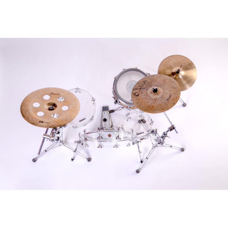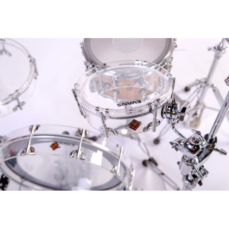 Комплектуется пластиками Evans, бас-барабан - серия EMAD с демпфирующим кольцом, что обеспечивает идеальный баланс мощности и басовости звучания, том-барабаны - серия ЕС2, ( Hydraulic Glass ), что оптимизирует атаку, звучание