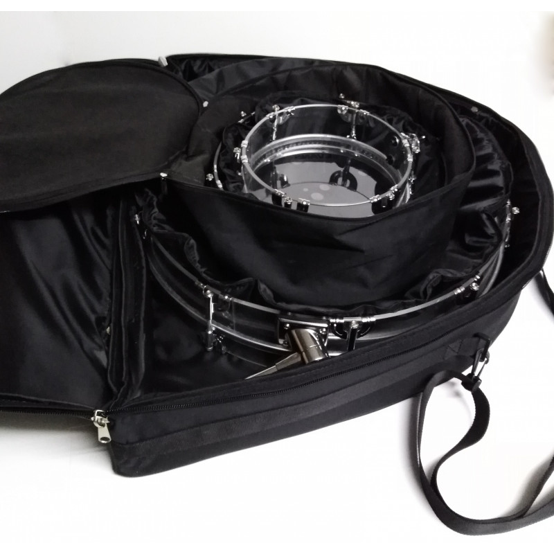 Комплектуется 2-мя чехлами. Наличие дополнительной прокладки и мешочка позволяет укладывать в чехол бас-барабана педаль или тарелку. Легко перевозится в салоне или багажнике автомобиля.