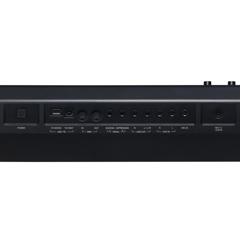 Подключение: Bluetooth MIDI и аудио, 1 x USB-A (устройство), 1 x USB-B (MIDI и аудио), MIDI вход / выход, разъем для наушников (1 x 1/4"), входной разъем (2 x 1/4" моно), выходные разъемы (1 x 1/4" L / L+R • 1 x 1/4" R), разъем для микрофона (1 x 1/4"), педаль (сустейн / экспрессия).