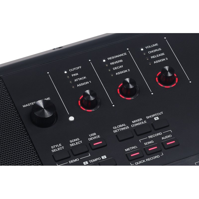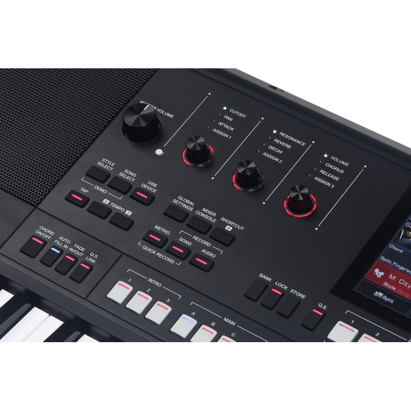 Управление стилем: Старт/Стоп, Синхронный старт / Синхронная остановка, Вступление 1 / Концовка 1, Вступление 2 / Концовка 2, Вступление 3 / Концовка 3, Основа A / Заполнение A, Основа B / Заполнение B, Основа C / Заполнение C, Основа D / Заполнение D, Автозаполнение, Включение / выключение аккорда, Нарастание / затухание звука, Q.S. link.