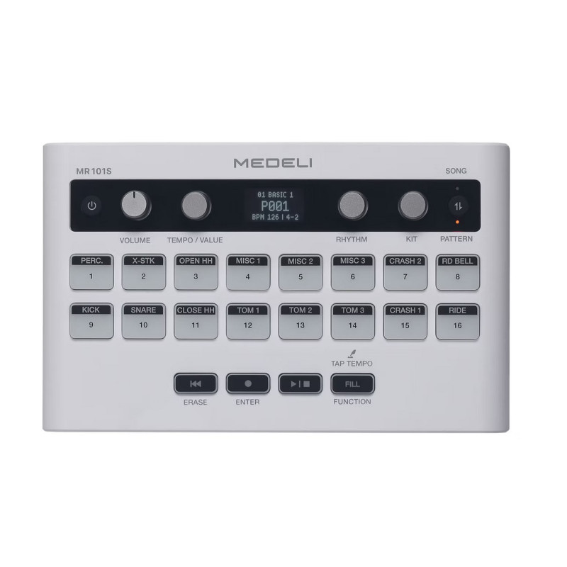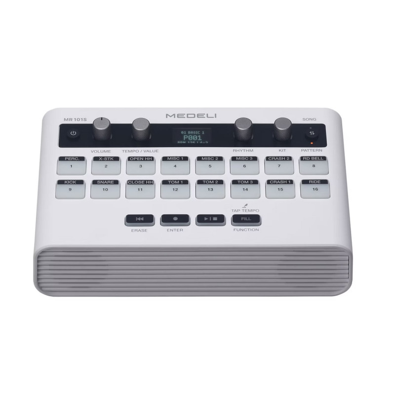 48 наборов ударных и 100 предустановленных паттернов ударных охватывают огромный диапазон музыкальных жанров, плюс вы можете записывать и сохранять до 100 собственных паттернов, что делает использование MR101S практически безграничным. Входящая в комплект педаль обеспечивает вам свободу рук для запуска заполнений, воспроизведения звуков, задания нужного темпа и запуска или остановки воспроизведения паттерна. Используйте ручки управления, чтобы добавить ощущения и грува к встроенным паттернам или вашим собственным записанным паттернам. Встроенные стереодинамики идеально подходят для работы с вашими битами без необходимости использования наушников или усилителя.