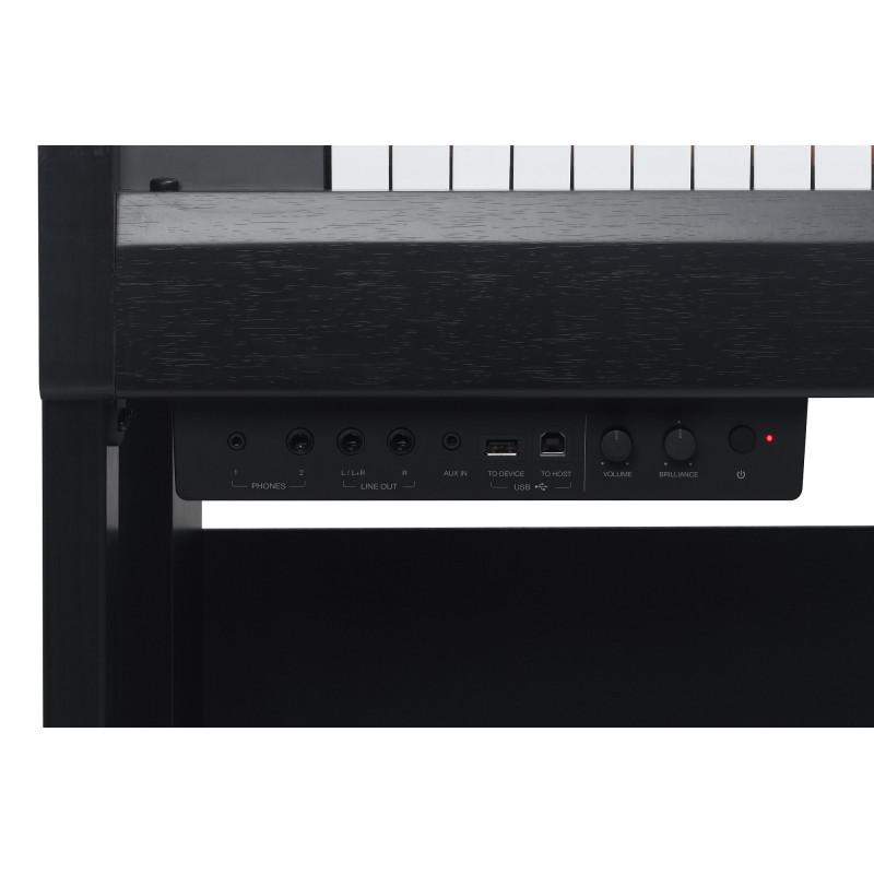 - Подключение: Bluetooth MIDI и аудио, 1 x USB-A (устройство), 1 x USB-B (MIDI и аудио), разъем для наушников (1 x 1/4", 1 x 1/8"), вход (1 x 1/8"), выход (2 x 1/4" (Л/Л+П, П)), педаль (сустейн/смягчение/состенуто).